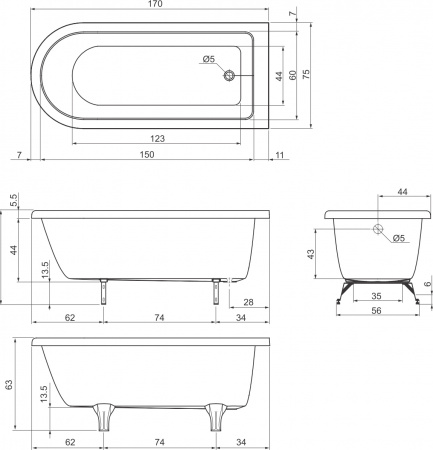 устанавливается для маскировки опорных ножек ванны |