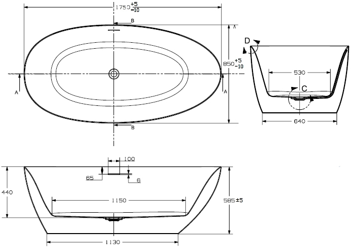 Акриловая ванна Art&Max Bologna AM-BOL-1785-850 175х85 купить в Москве дешево