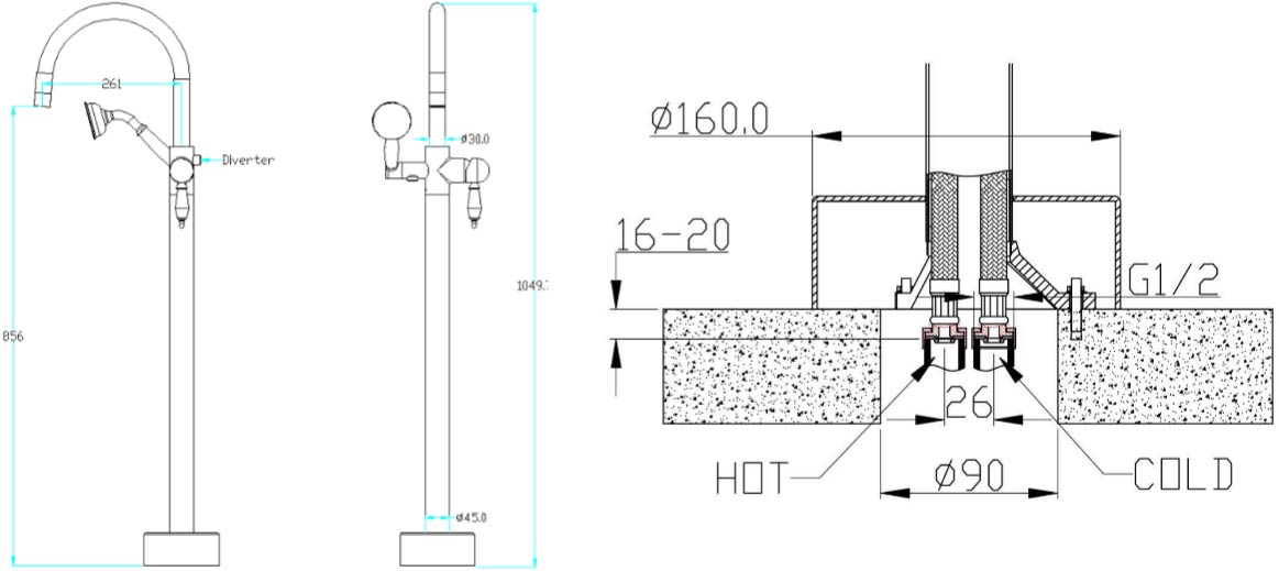 Смеситель Boheme Medici 309 напольный, для ванны с душем |