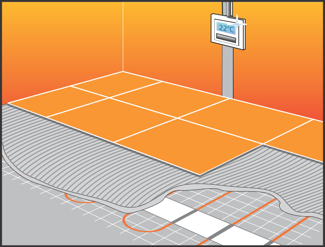 - Толщина кабеля менее 5 мм, что позволяет использовать минимальную толщину плиточного клея 8-10 мм