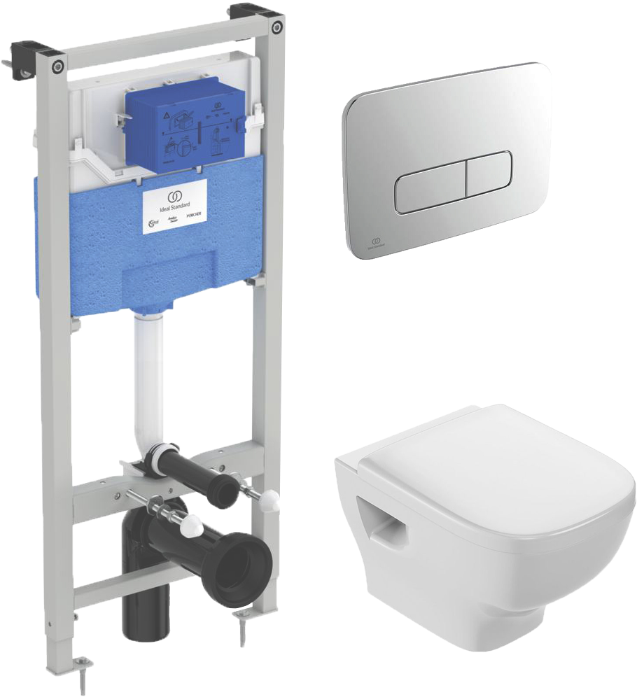 Комплект Унитаз подвесной Jacob Delafon Struktura EDF102-00 с крышкой-сиденье + Инсталляция Ideal Standard ProSys 120P R027767 + Кнопка смыва Ideal Standard ProSys Oleas R0124AA хром купить в Москве дешево